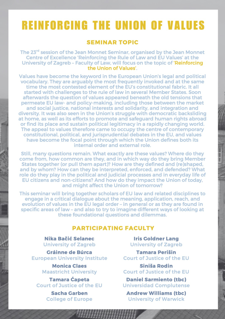 XXIII Jean Monnet Seminar “Reinforcing the Union of Values”