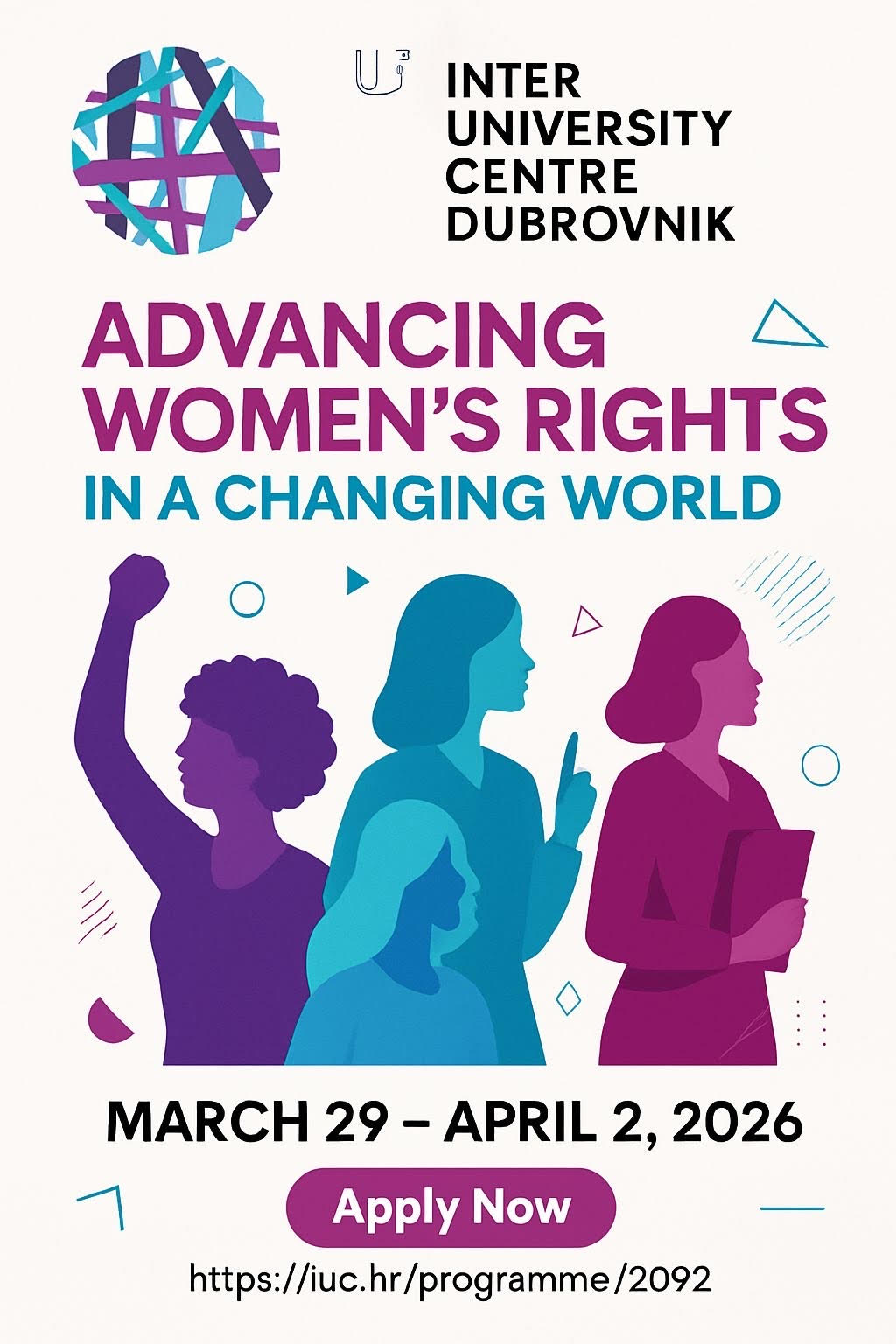 Pozivamo studentice i studente završnih godina Sveučilišnog integriranog prijediplomskog i diplomskog studija Pravo te studentice i studente doktorskog studija Prave znanosti da se putem linka https://iuc.hr/programme/2092 prijave za sudjelovanje na poslijediplomski tečaj “Advancing Women’s Rights in a Changing World”.