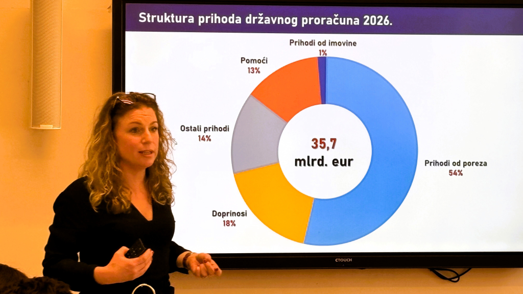 Studentima je potom detaljno predstavljen postupak izrade državnog proračuna, kao i procesi planiranja i izvršavanja proračuna. O navedenim temama govorili su Hana Zoričić, ovlaštena za obavljanje poslova ravnatelja Uprave za procese Državne riznice, te Matko Bilić, stručni savjetnik u Upravi za makroekonomske analize.