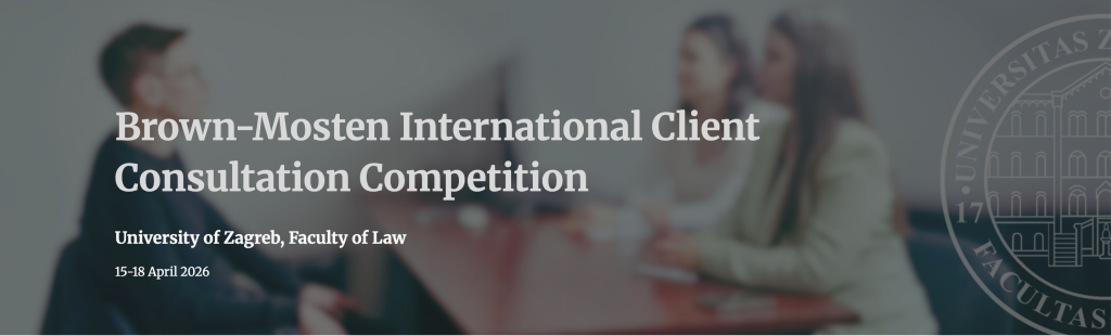 Pravni fakultet u Zagrebu od 15. do 18. travnja 2026. po prvi će put biti domaćin Brown Mosten ICCC (http://www.brownmosten.com) – međunarodnog natjecanja koje studente prava iz cijelog svijeta podučava profesionalnom i etičnom savjetovanju stranaka.